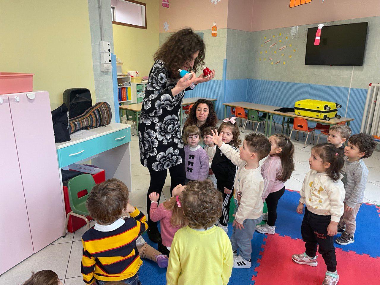 Tante sono state le metodologie messe in campo dalla maestra Francesca: l’ascolto di un albo illustrato seguito da un circle time per domande e riflessioni, giochi collettivi con l’utilizzo di materiali colorati e suggestivi (stelle, foulard colorati, disegni, ecc.), giochi sonori che hanno avvicinato i bambini al linguaggio musicale con un’immersione diretta, corporea ed esplorativa. I variopinti ovetti sonori, il triangolo, le maracas, l’ukulele sono stati solo alcuni degli strumenti musicali utilizzati che hanno creato un clima di accoglienza e una sensazione di benessere generale.