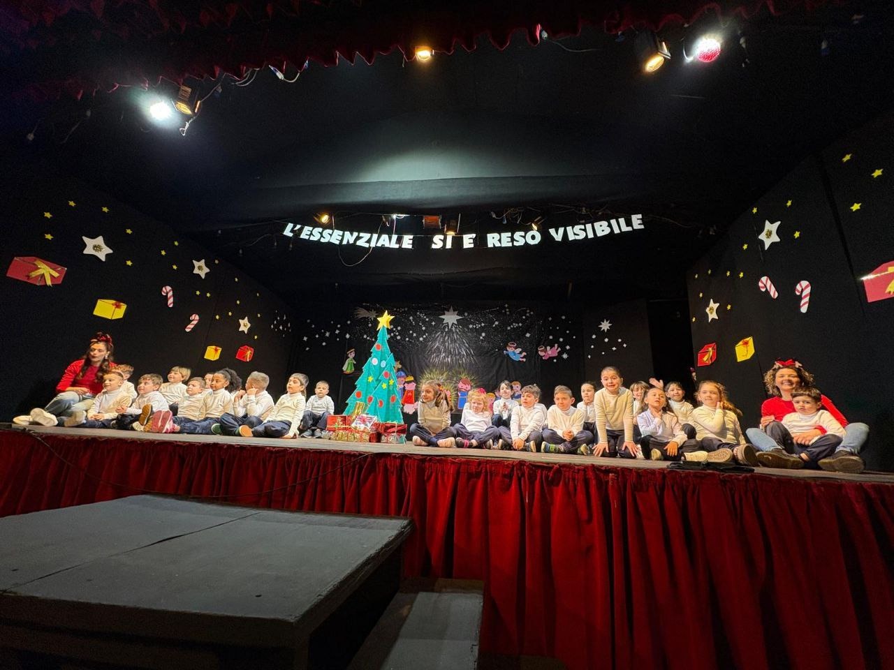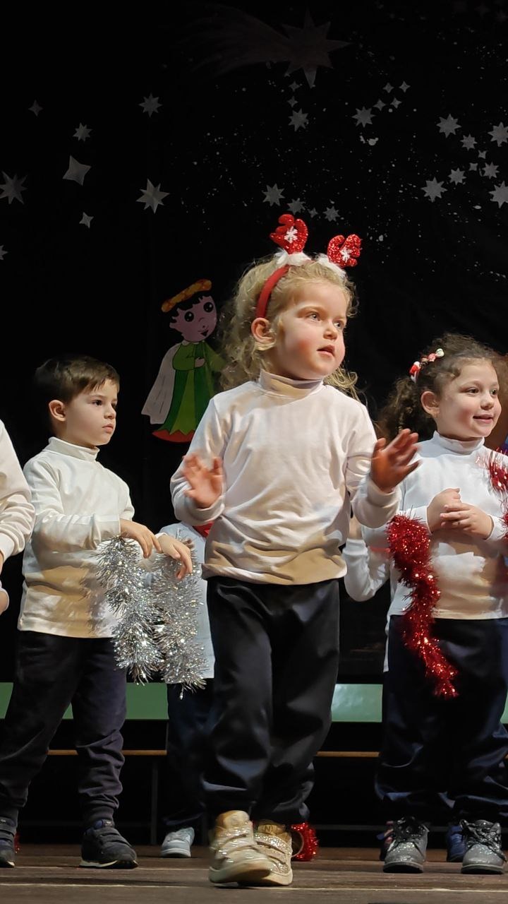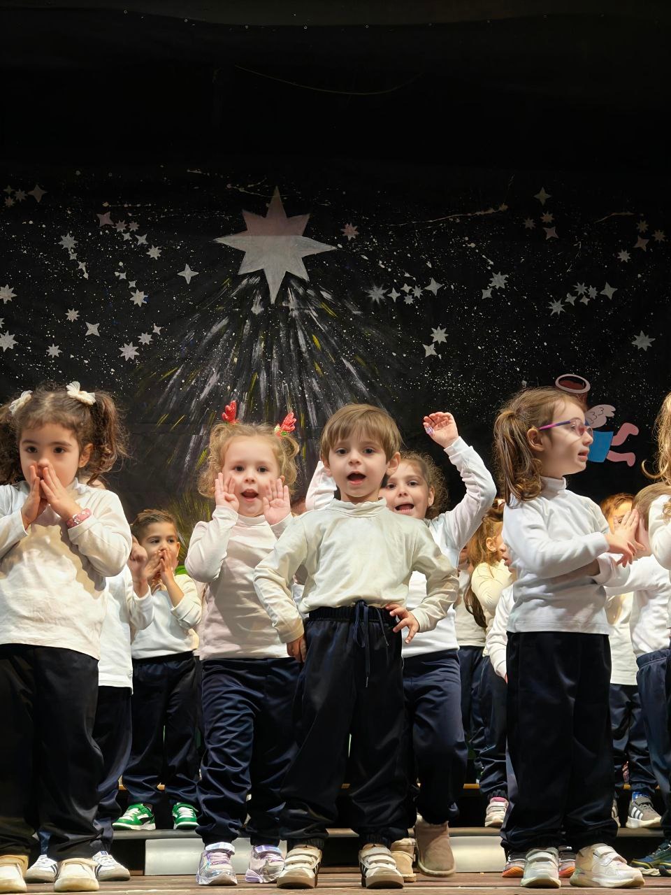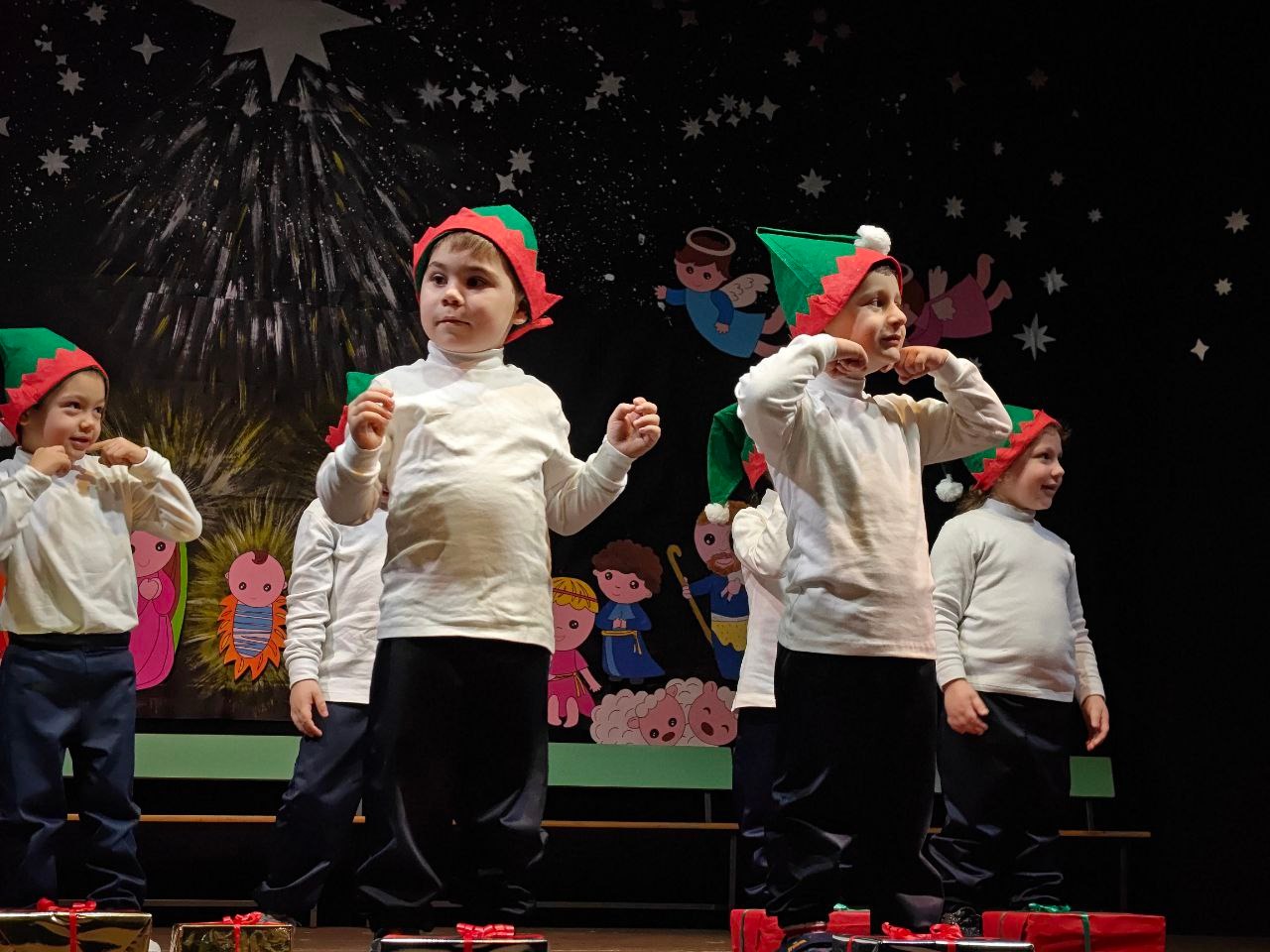 Le classi dei tre e quattro anni hanno, invece, allietato le famiglie con le coreografie ispirate ai simboli del Natale: luci, palline e regali hanno preso vita sul palco. Ogni scena è stata aperta da una dolce voce narrante che preparava gli spettatori al magico clima della festa e li accompagnava nel racconto. Le famiglie hanno, con enorme sorpresa, potuto vedere l’autentico e gioioso coinvolgimento anche dei più piccoli che salutavano e saltavano con naturalezza. Tutti hanno seguito le insegnanti nei vari passi di danza, nei canti e nelle filastrocche anche in lingua inglese dando prova, con successo, delle settimane impegnate nei preparativi.