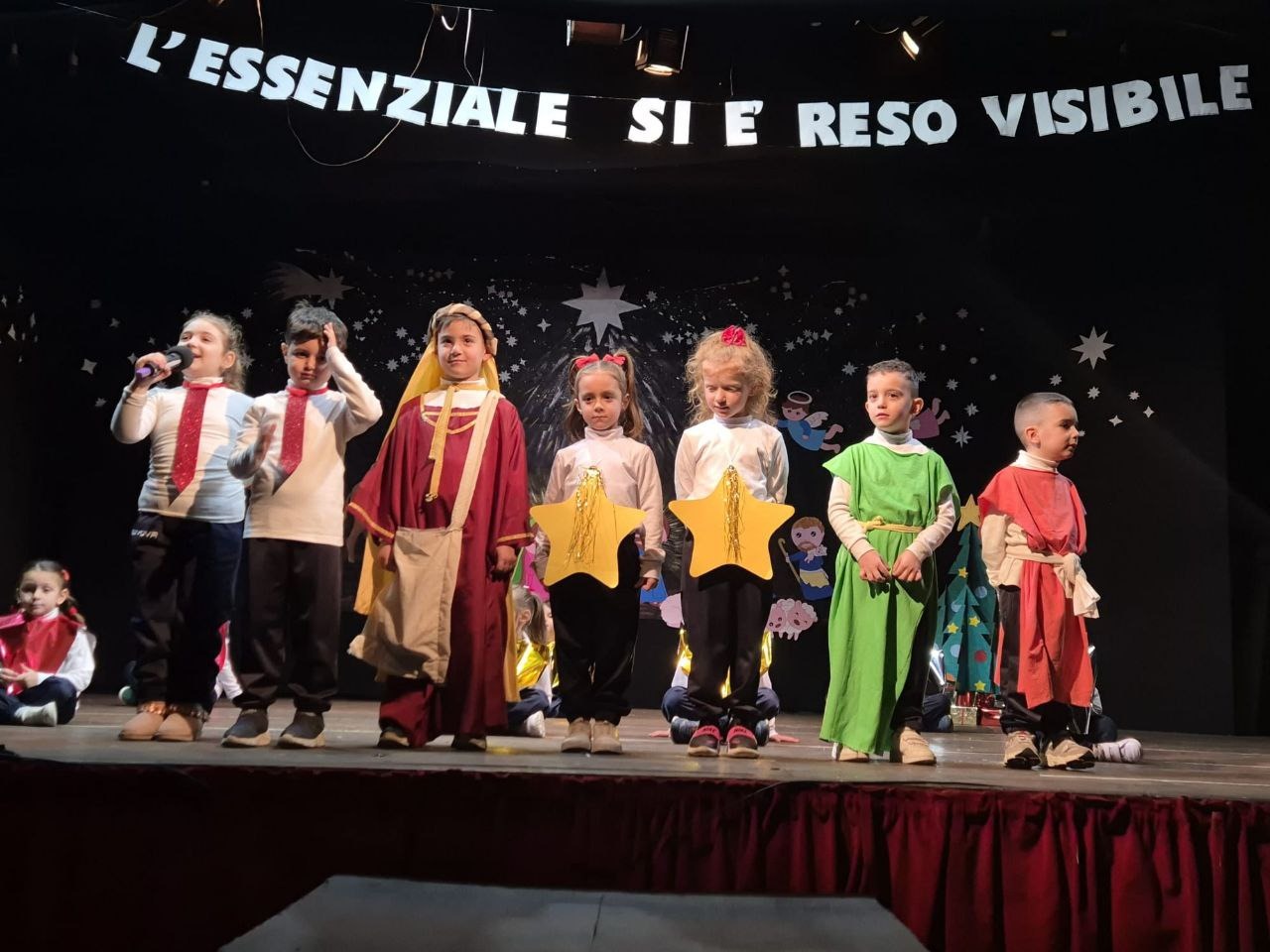 La classe dei cinque anni ha messo in scena il racconto del leggendario Quarto Re di nome Artabano che, incuriosito dal viaggio dei Magi, vuole raggiungere la grotta di Betlemme. Sembra lasciarsi scoraggiare, però, dal non avere un cammello, né un dono per il Re dei Re, crede, addirittura, di non essere abbastanza importante per una così grande missione; verranno in suo aiuto tante voci angeliche che gli daranno coraggio e lo inviteranno a essere altruista. Si mette in cammino e, lungo la strada, incontra poveri, assetati, bisognosi del suo aiuto che, mentre lo trattengono e rallentano il suo andare, gli indicano il vero volto della generosità.